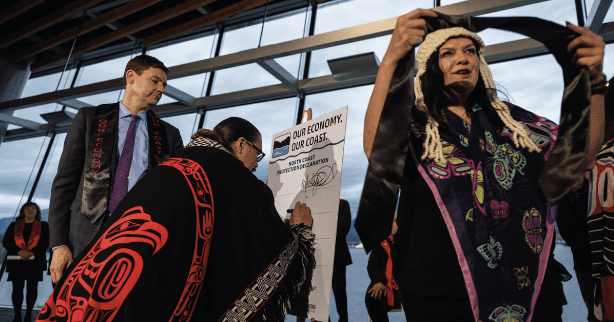 Haida Gwaii was represented at the signing table on November 5 as Gaagwiis Jason Alsop, President of the Council of the Haida Nation, joined North Coast Nations and the Province of British Columbia in issuing the North Coast Protection Declaration, urging the federal government to keep the Oil Tanker Moratorium Act intact.