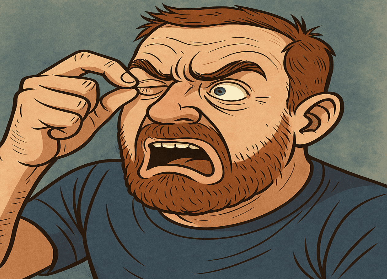 Are you kidding me?! That didn’t get it!!?? What the heck man! I can see it! It’s right there!! It’s got to be either on my cheek! Nose! Just below my eye! There is literally nowhere else this little piece of crap hair could be!  I mean I’M LOOKING RIGHT AT IT! Hang on. I’m just gonna grab a towel and wipe my whole face. This thing is starting to distract the cheese whiz outta me.
