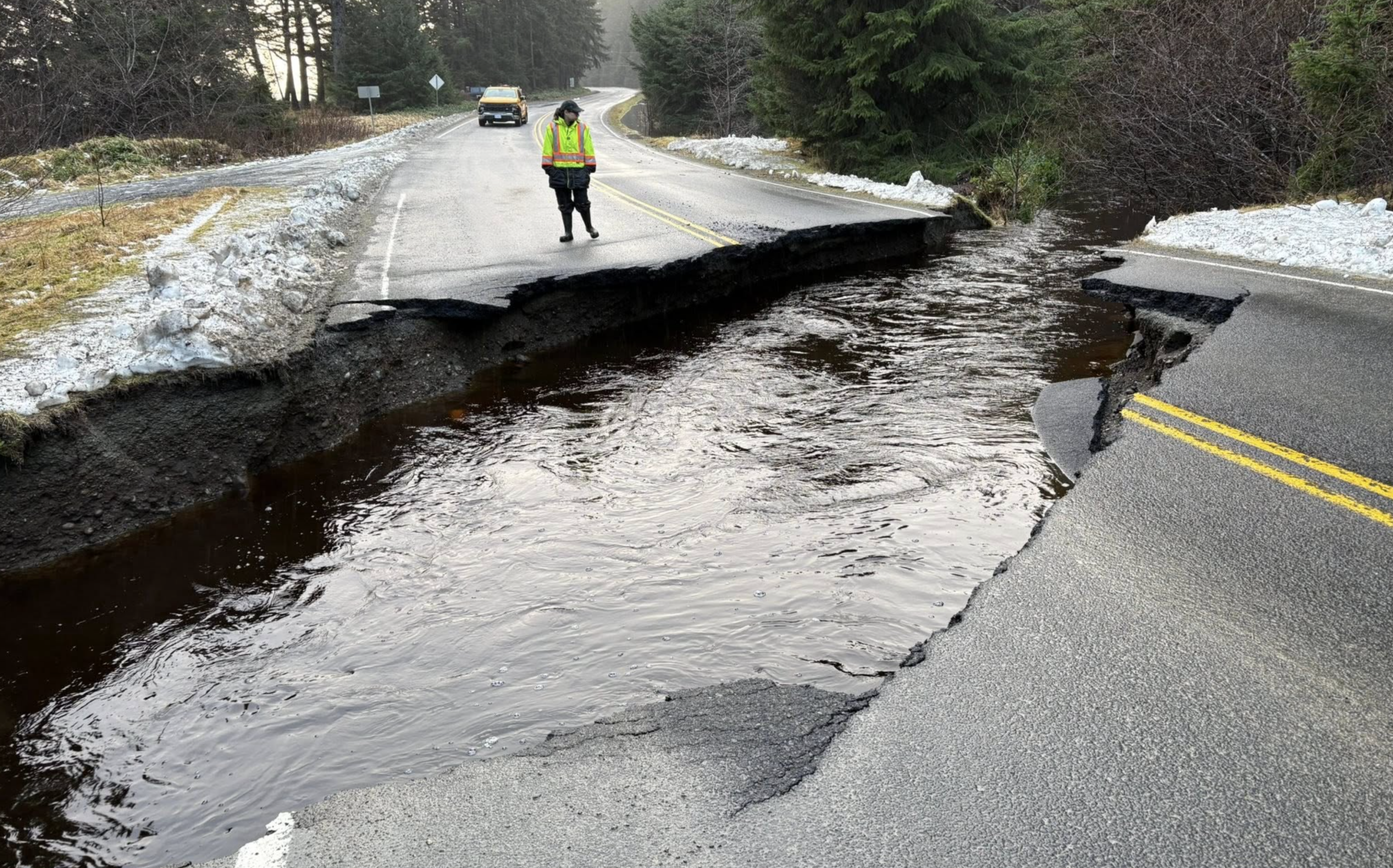 Highway 16 Closed After Washout Near Jungle Beach Cuts Off Northern Haida Gwaii
