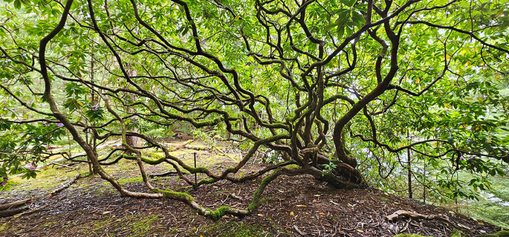 Our first foray is to see the famous giant rhododendrons of the Evans Farm Homestead.