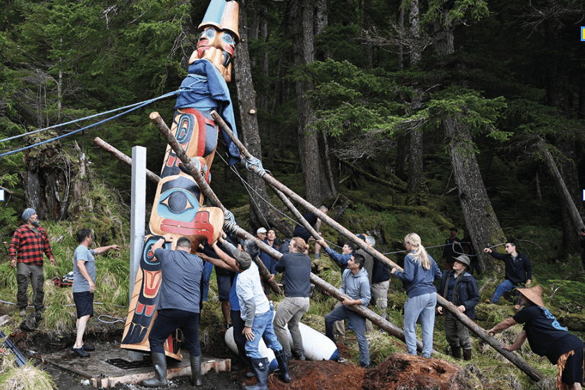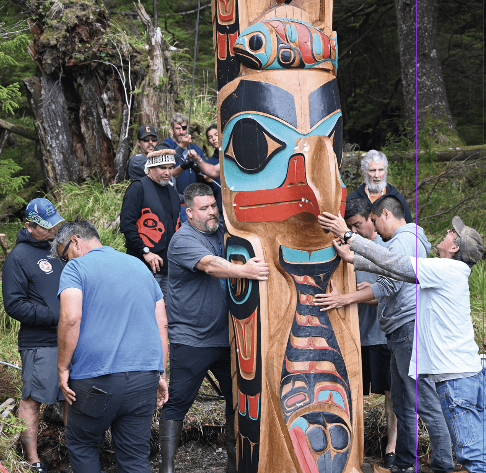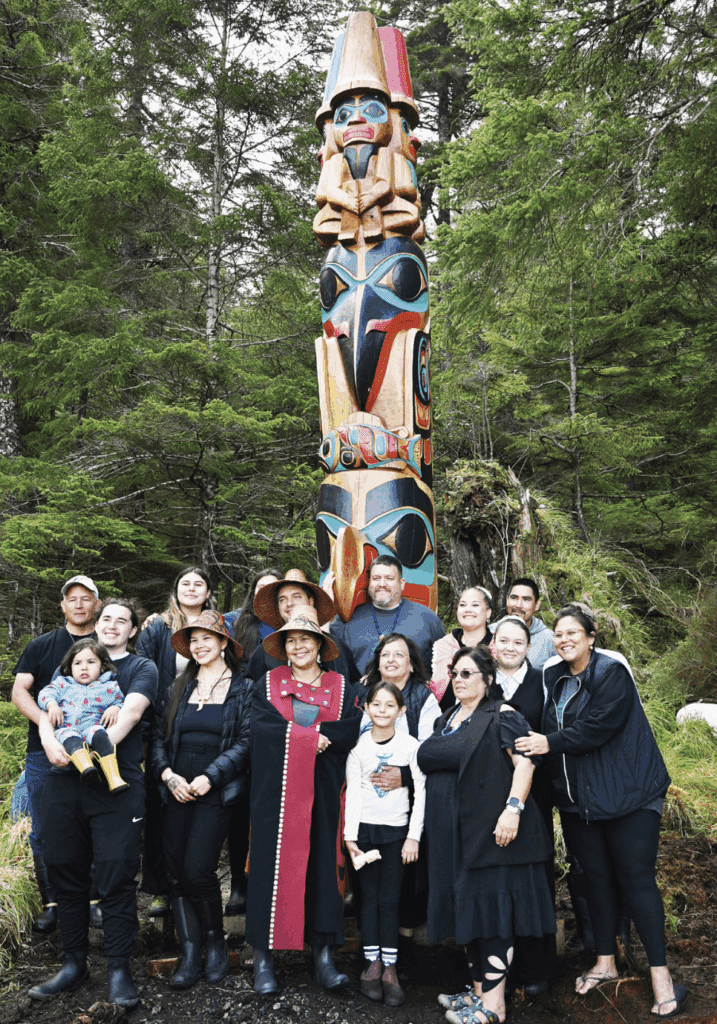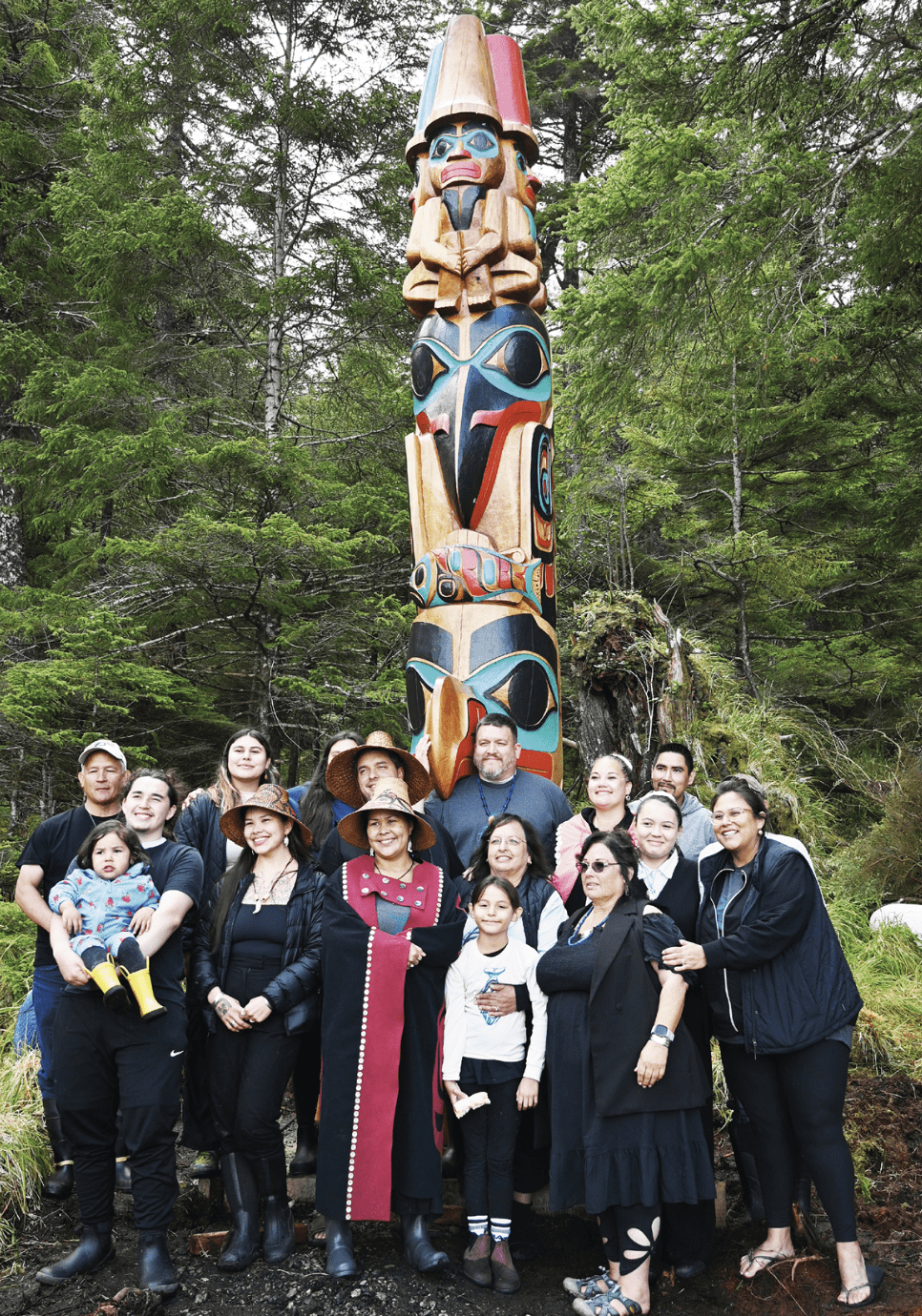 As the pole was raised, Haida songs and prayers were performed in traditional ways. Witnesses described the moment as solemn, with many watching in silence from their boats as the carved memorial was raised in place.