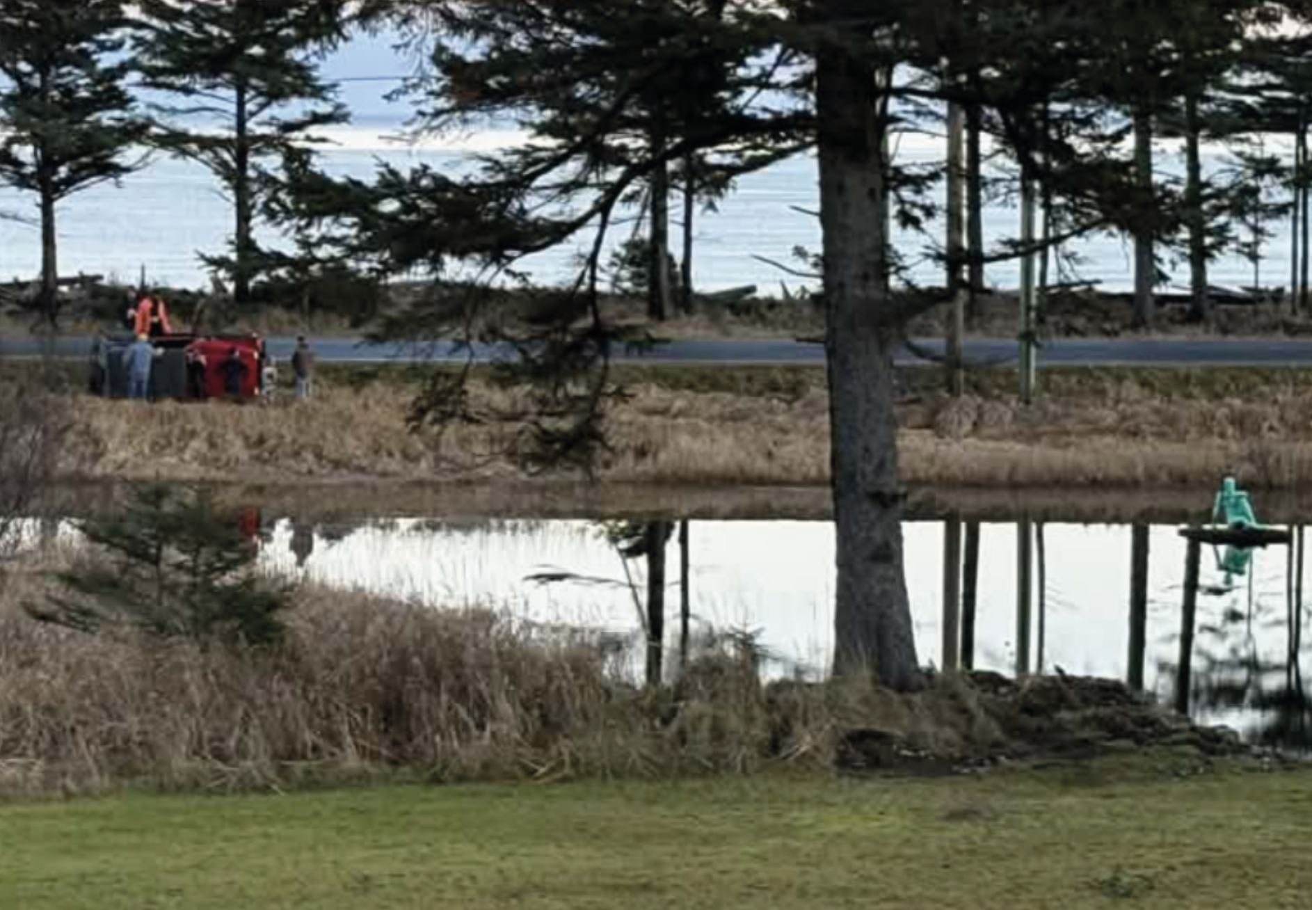Alexandra Rinfret, one of the creators of the Green Man and owner of the pond he calls home, said the whole scene unfolded fast.
