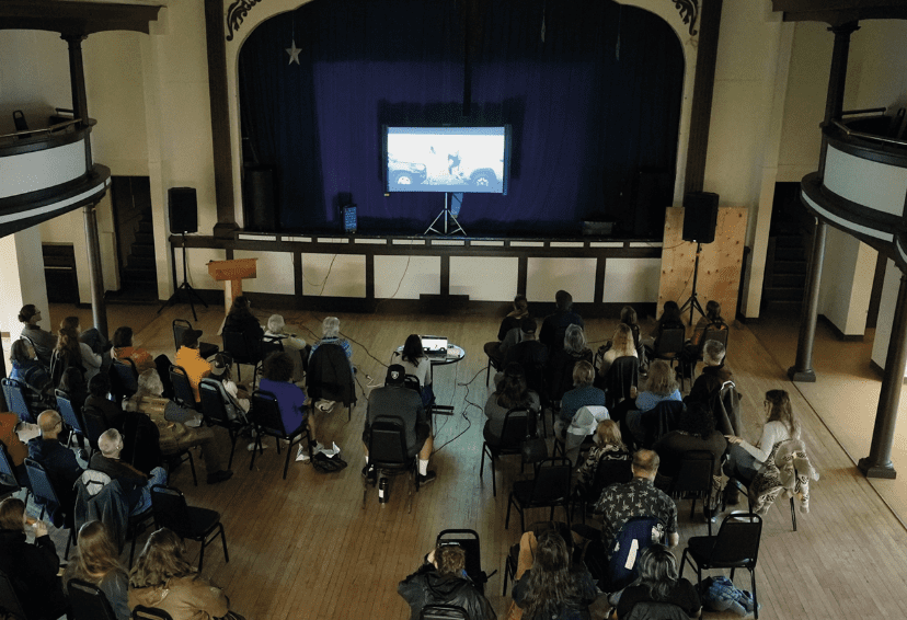 Behind the scenes, a committee of Mike, Jonathan, and Dwyer handled technical needs, sound, and film curation. Visiting guests included Ivan Hughes of VIMFF and Angela Heck of the Whistler Film Festival, with Hughes also capturing photos from the events. Funding and support came through VIMFF, the BC Arts Council, and the Canada Council for the Arts.