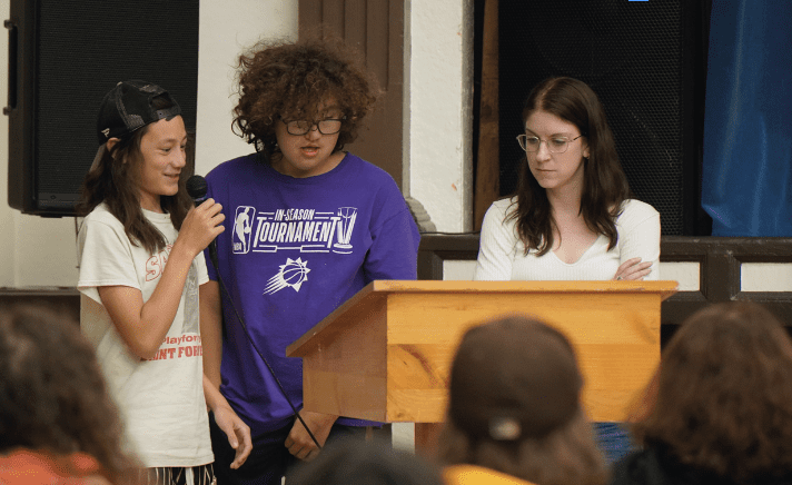 In Gaw Tlagée–Old Massett, the Tlúu Xaada Naay Society welcomed guests with traditional dance and song. Local high school students Maurice and Wiija stepped confidently into the spotlight as emcees, while Junior Rangers supported set-up and take-down. The U13 Junior All Native basketball team managed the concession stand, turning the screening into a community effort with young people at its heart.