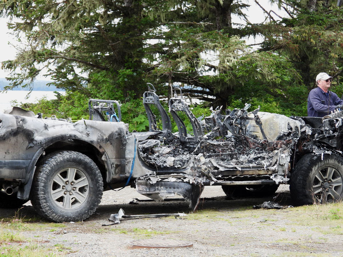 Fire destroyed a pickup truck outside the Northern Haida Gwaii Hospital last Thursday afternoon.